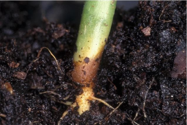 • Post-emergence: The seedling sprouts, looks healthy for a day or two, and then the stem at the soil line becomes weak, soft, and collapses.